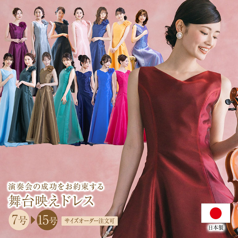 演奏会 ロングドレス 日本製[裾丈カット無料] 発表会 演奏会用ドレス コーラス 衣装 オーケストラ コンクール カラードレス フォーマル ステージ